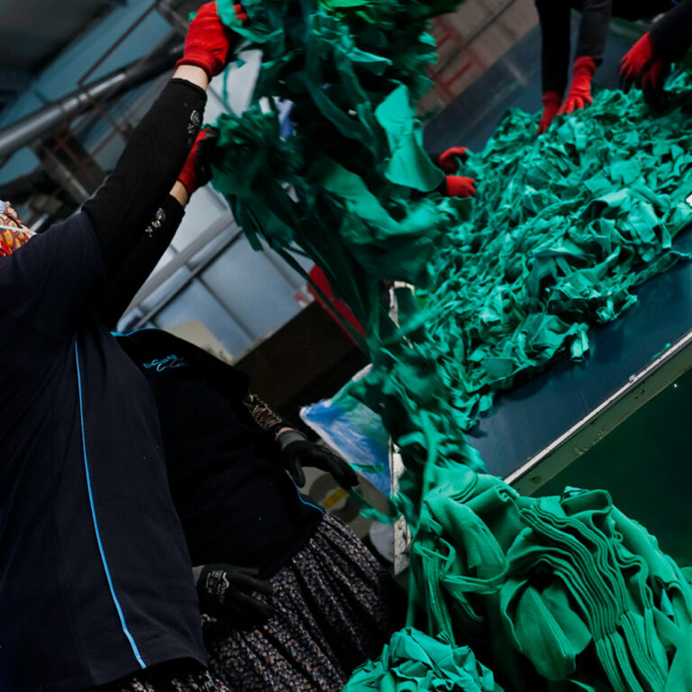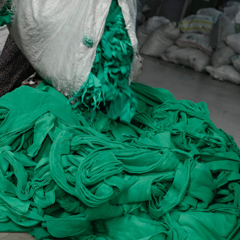 Cut fabric pieces and similar textile wastes left from industrial production processes are collected. These wastes are carefully classified according to their types and colors, ensuring that each material is used in the most efficient way.