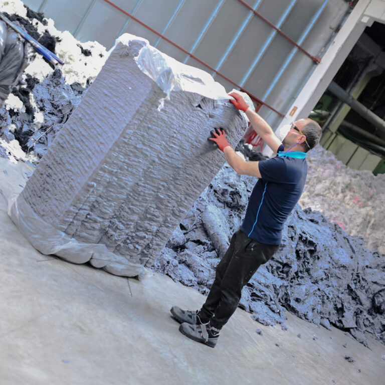 The textile wastes turned into fibers are broken down into smaller pieces and cut to the desired length. At this stage, the quality and homogeneity of each piece are ensured, leading to excellent results in the subsequent stages of production.