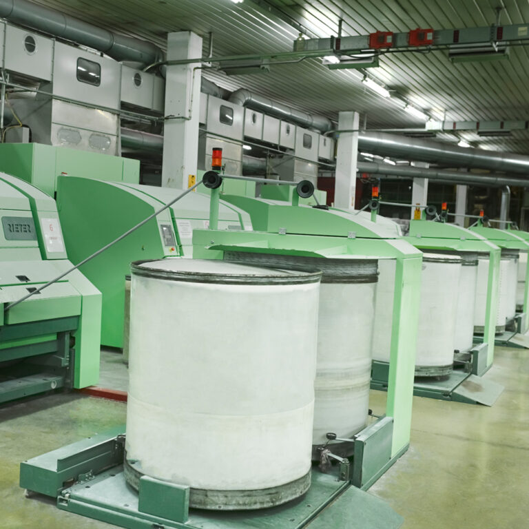 Different types of fibers are mixed in specific proportions and homogenized. This blend is prepared to give life to the yarns of the future. The harmonious mixing of fibers is one of the most artistic steps in our production process.